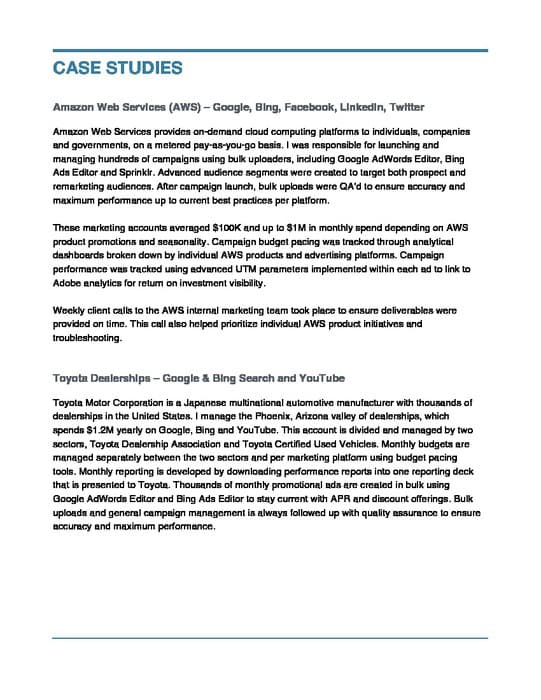 Cody Cusker specializes in increasing ROI by optimizing business sales and leads. He has created, measured, analyzed, and optimized digital marketing campaigns for various clients, including Toyota, Acuity Scheduling, TCF Center (Detroit Convention Center), Goodyear, Honeywell Aerospace, Republic Services, TruGreen, and Arizona Lottery. His experience includes launching and managing numerous campaigns for AWS (Amazon Web Services) using bulk uploaders, such as Google AdWords Editor, Bing Ads Editor, and Sprinklr. Cody also holds certifications in Google Ads, Google Analytics, and Facebook Blueprint.