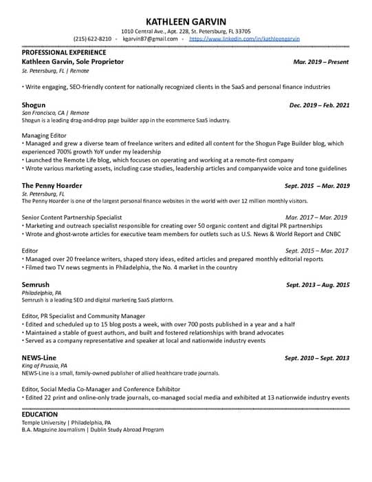 Kathleen Garvin is a content strategist with 10 years of experience working with companies in the SaaS and personal finance sectors. She previously worked at Shogun, where she managed and grew a diverse team of writers and edited all content for the Shogun Page Builder blog. At SEMrush, she edited, scheduled, and published numerous blog posts. Kathleen also worked as a senior content partnership specialist at The Penny Hoarder.