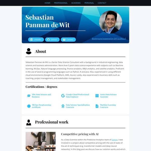 Sebastian is a Senior Data Science consultant with a background in industrial engineering, data science, and business administration, and more than 5 years of consultancy experience at top-tier consultancy firms (e.g. Deloitte) working for numerous Fortune-500 companies in various Data Science subjects such as Machine learning, MLOps, Natural language processing, finance analytics, M&A analytics, and satellite analytics. He is proficient in using different programming languages (e.g. Python, R, Java), and cloud environments (e.g. Azure, AWS, GCP). Lastly, he is also experienced in business skills such as coaching, project management, and stakeholder management.