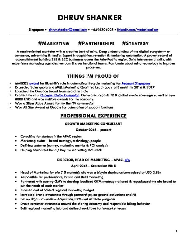 An entrepreneur and marketer, Dhruv Shanker has expert knowledge of e-commerce, advertising, and digital media with a proven record of accomplishment building B2B and B2C businesses across the Asia-Pacific region. Specializing in affiliate marketing, CRM, and marketing automation, he has worked on various marketing roles at global corporations such as Google, Yahoo, Groupon, and ofo. He has won several awards including a Silver Abby Award for his first TV commercial and an All-Star Award at Google for automation of support functions. Dhruv is also proficient in using tools like Google Analytics, Salesforce, Omniture, Blueshift, and Pardot.